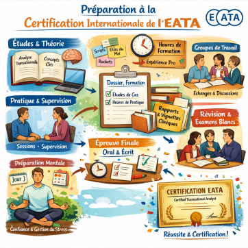Dès le début de la signature du contrat avec l’E.A.T.A., je mets un point d’honneur à instaurer un climat de confiance et de motivation. La certification internationale peut être source de stress, de doutes, d’appréhension. Mon rôle est alors de rassurer, donner du sens aux efforts demandés et de rappeler que cette certification constitue une véritable opportunité académique et professionnelle, reconnue par tous les analystes transactionnels.