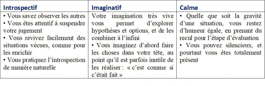 Introspectif, imaginatif, calme