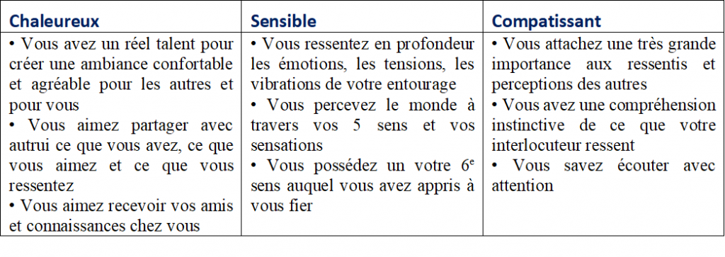Chaleureux, sensible, compatissant