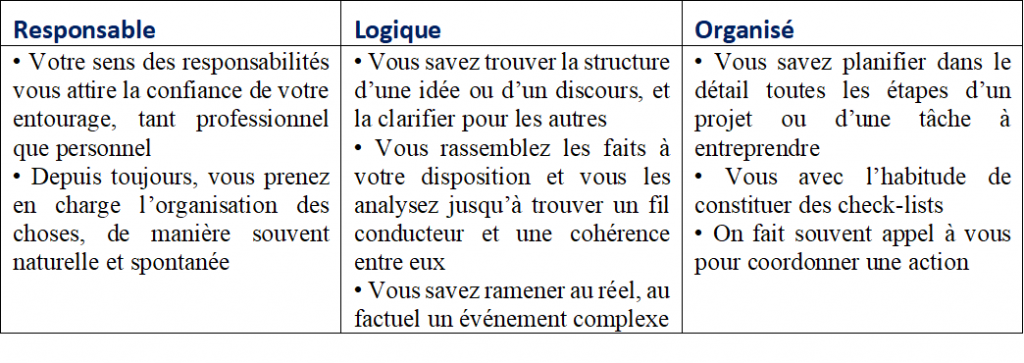 Responsable, logique, organisé